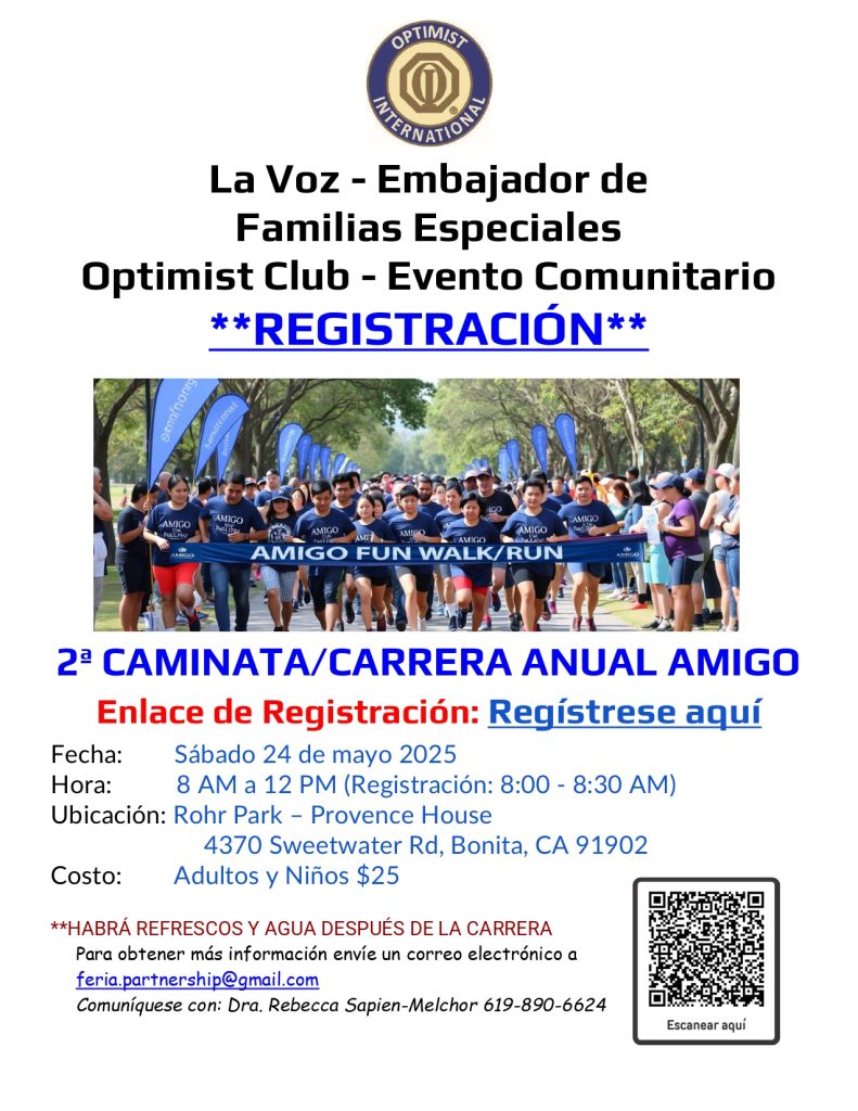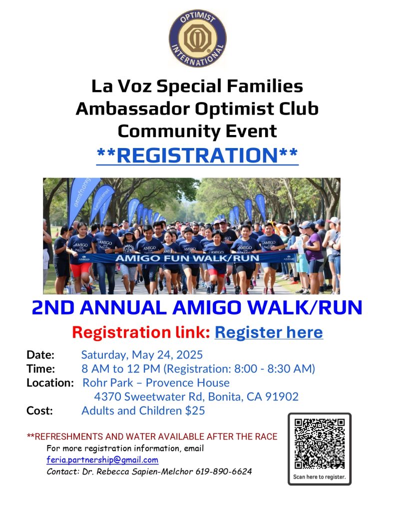 Join the La Voz Special Families Ambassador Optimist Club Community Event for the 2nd Annual Amigo Walk/Run